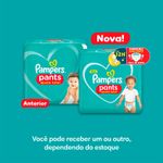 Descrição Marketplace:<P><STRONG><FONT size=5>Fraldas Pampers Pants Ajuste Total XXG – Embalagem Econômica 60 Unidades <BR></FONT></STRONG><STRONG>Pampers Pants</STRONG> Ajuste Total com<STRONG> cintura elástica 360°</STRONG> se <STRONG>adapta ao corpinho do bebê</STRONG> para um ajuste perfeito e agora tem uma nova barreira anti-cocô atras para <STRONG>proteção contra vazamentos</STRONG> nas costas, para Até <STRONG>ZERO vazamentos</STRONG>.A fralda calça Pampers Pants Ajuste Total é<STRONG> fácil de</STRONG> <STRONG>vestir </STRONG>e <STRONG>de trocar</STRONG> até quando o bebê está em movimento<STRONG>, trazendo maior liberdade</STRONG> de movimento para que seu bebê possa brincar sem interrupções. A <STRONG>Fralda </STRONG>Pants Ajuste Total possui uma <STRONG>super absorção</STRONG> para que o bumbum do seu bebê fique sequinho durante as noites . Pampers Pants Ajuste Total também <STRONG>possui gel mágico que absorve</STRONG> e <STRONG>retém a umidade no interior da fralda</STRONG> numa camada ultra absorvente para <STRONG>maior conforto dos bebês</STRONG>. </P> <P></P> <P> <H2 style="DISPLAY: inline">Principais Benefícios da Pampers Pants Ajuste Total XXG </H2><BR><STRONG>- Ajuste 360°: </STRONG>cintura elástica que acompanha cada movimento do bebê.<BR><STRONG>- Proteção prolongada: </STRONG>absorção de até 12 horas para noites e dias tranquilos.<BR><STRONG>- Troca rápida e prática: </STRONG>veste como shortinho, ideal para bebês ativos.<BR><STRONG>- Toque macio e respirável: </STRONG>mantém a pele saudável e confortável.<BR><STRONG>- Barreiras antivazamento:</STRONG> ajudam a evitar escapes, mantendo o bebê seco. <P></P> <P> <H3 style="DISPLAY: inline">Indicação: </H3><BR>Indicada para bebês de 14 a 18 kg, a Pampers Pants XXG é perfeita para uso diurno e noturno, garantindo ajuste seguro e absorção eficiente. <P></P> <P> <H3 style="DISPLAY: inline">Dica: </H3><BR>Utilize junto com<STRONG> Lenços Umedecidos</STRONG> Pampers para uma limpeza suave a cada troca. <P></P> <P> <H2 style="DISPLAY: inline">Modo de uso: </H2><BR><STRONG>1.</STRONG> Coloque a mão dentro da fralda;<BR><STRONG>2.</STRONG> Suba a fralda como um shortinho;<BR><STRONG>3.</STRONG> Para retirar a fralda rasgue nas laterais e retire-a normalmente;<BR><STRONG>4.</STRONG> Enrole e feche a fralda com a fita adesiva da parte de trás, e descarte. <P></P> <P> <P style="MARGIN-RIGHT: 0px" dir=ltr> <H2 style="DISPLAY: inline">Tabela de Tamanhos Pampers </H2><BR><STRONG>- RN: </STRONG>até 4,5 kg<BR><STRONG>- P:</STRONG> 3 a 6 kg<BR><STRONG>- M:</STRONG> 6 a 9,5 kg<BR><STRONG>- G:</STRONG> 9,5 a 12 kg<BR><STRONG>- XG:</STRONG> 12 a 15 kg<BR><STRONG>- XXG:</STRONG>14 a 18 kg<BR><STRONG>- XXXG:</STRONG> 15 a 27 kg (pode variar conforme a linha) <P></P> <P></P> <P> <H3 style="DISPLAY: inline">Perguntas Frequentes: </H3><BR> <H3 style="DISPLAY: inline">1. A cada quanto tempo deve-se realizar a troca da fralda infantil? </H3><BR>A fralda do bebê deve ser trocada sempre que estiver suja, ou seja, quando o bebê fizer xixi ou cocô. A frequência de troca pode variar de acordo com a idade do bebê e o ciclo de sono dele. Nos primeiros três meses de vida, é recomendado trocar a fralda sempre que o bebê mamar ou a cada três horas. Já à noite, é melhor não trocar a fralda com tanta frequência para que o bebê possa dormir e relaxar. Para evitar assaduras, é importante trocar a fralda com frequência e limpar bem a região genital do bebê. <P></P> <P> <H3 style="DISPLAY: inline">2. Qual é a idade recomendada para o desfralde? </H3><BR>A idade recomendada para o desfralde varia de criança para criança, mas geralmente ocorre entre os 2 e 3 anos de idade. No entanto, é importante observar os sinais de prontidão da criança, como demonstrar interesse em usar o penico, avisar quando a fralda está suja, e conseguir ficar com a fralda seca por algumas horas. O processo deve ser feito de forma gradual e respeitando o ritmo da criança. <P></P> <P>A Fralda <STRONG>Pampers</STRONG> Pants Ajuste Total XXG Embalagem Econômica com 60 unidades. Garanta já e proporcione ao seu bebê proteção, conforto e praticidade em cada troca.</P>