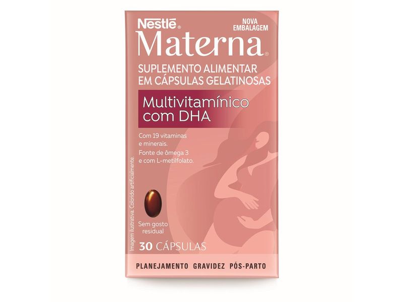 Descrição Marketplace:<P></P> <P> <H2 style="DISPLAY: inline">Suplemento Alimentar Materna Multivitamínico com DHA 30 Cápsulas – Saúde e Nutrição para Gestantes e Lactantes<BR></H2>Suplemento alimentar Multivitamínico com DHA em cápsulas gelatinosas destinado para adultos, gestantes e lactantes. <P></P> <P> <H2 style="DISPLAY: inline">Principais Ativos do Suplemento Alimentar Materna Multivitamínico com DHA: <BR></H2>- DHA (Ácido Docosahexaenoico)<BR>- Ácido Fólico (Vitamina B9)<BR>- Vitamina A<BR>- Vitamina D<BR>- Vitamina C<BR>- Vitamina E<BR>- Ferro<BR>- Cálcio <P></P> <P> <H2 style="DISPLAY: inline">Para que Serve o Materna Multivitamínico com DHA?<BR></H2>-Suplementar vitaminas e minerais essenciais durante a gravidez.<BR>-Apoiar o desenvolvimento do cérebro e olhos do bebê.<BR>-Ajudar na prevenção de deficiências nutricionais comuns na gestação.<BR>-Contribuir para a saúde da mãe antes, durante e após a gravidez. <P></P> <P> <H2 style="DISPLAY: inline">Como Consumir<BR></H2>Adultos, Gestantes e Lactantes, consumir 1 cápsula ao dia. Deve ser ingerido com líquido, de preferência junto com a refeição.